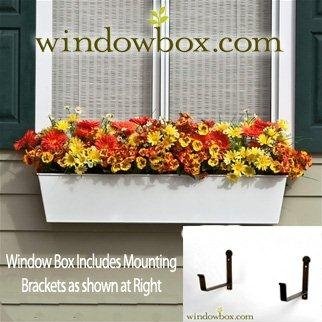 >.< Tapered Galvanized Window Box - White - 36 Inch | Includes 8 Inch Shelf Bracket Pair @Low Price